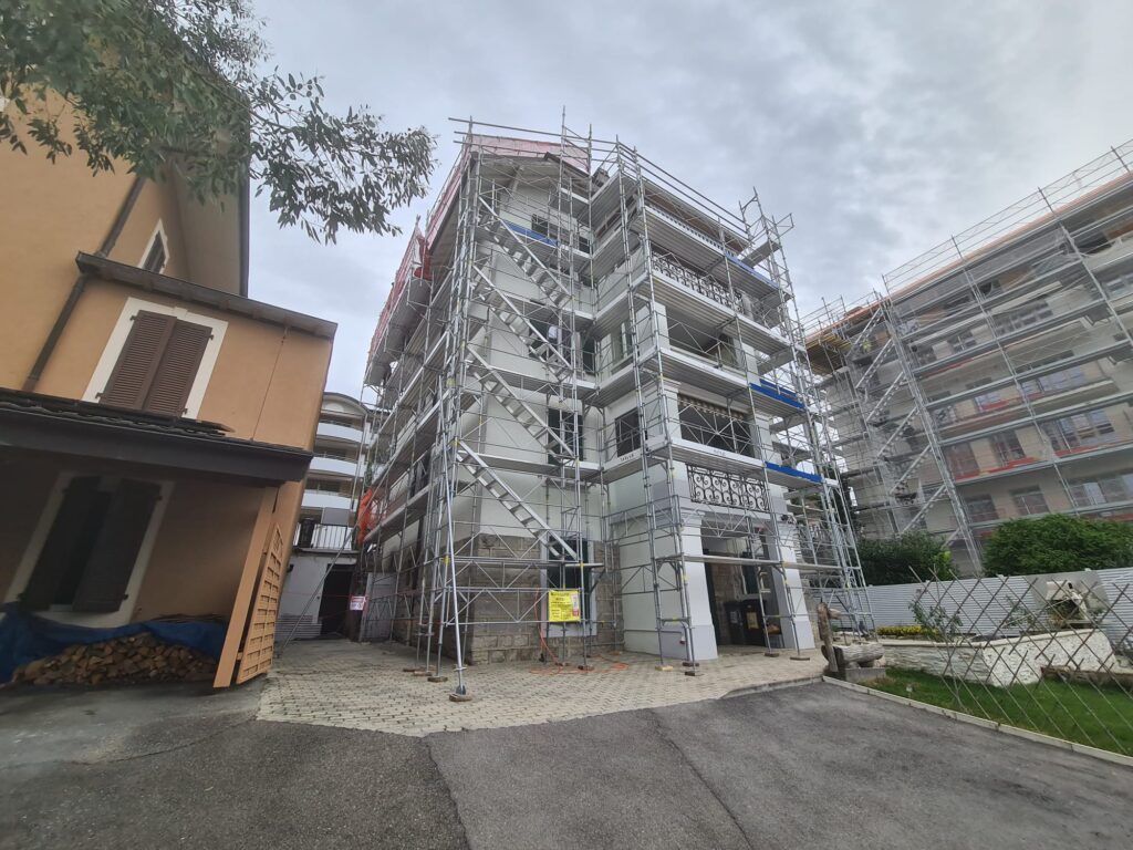 This project highlights a striking exterior facade transformation, featuring durable materials and contemporary design elements. The meticulous craftsmanship enhances the building's aesthetic appeal and structural integrity, making it stand out with a modern, polished finish.